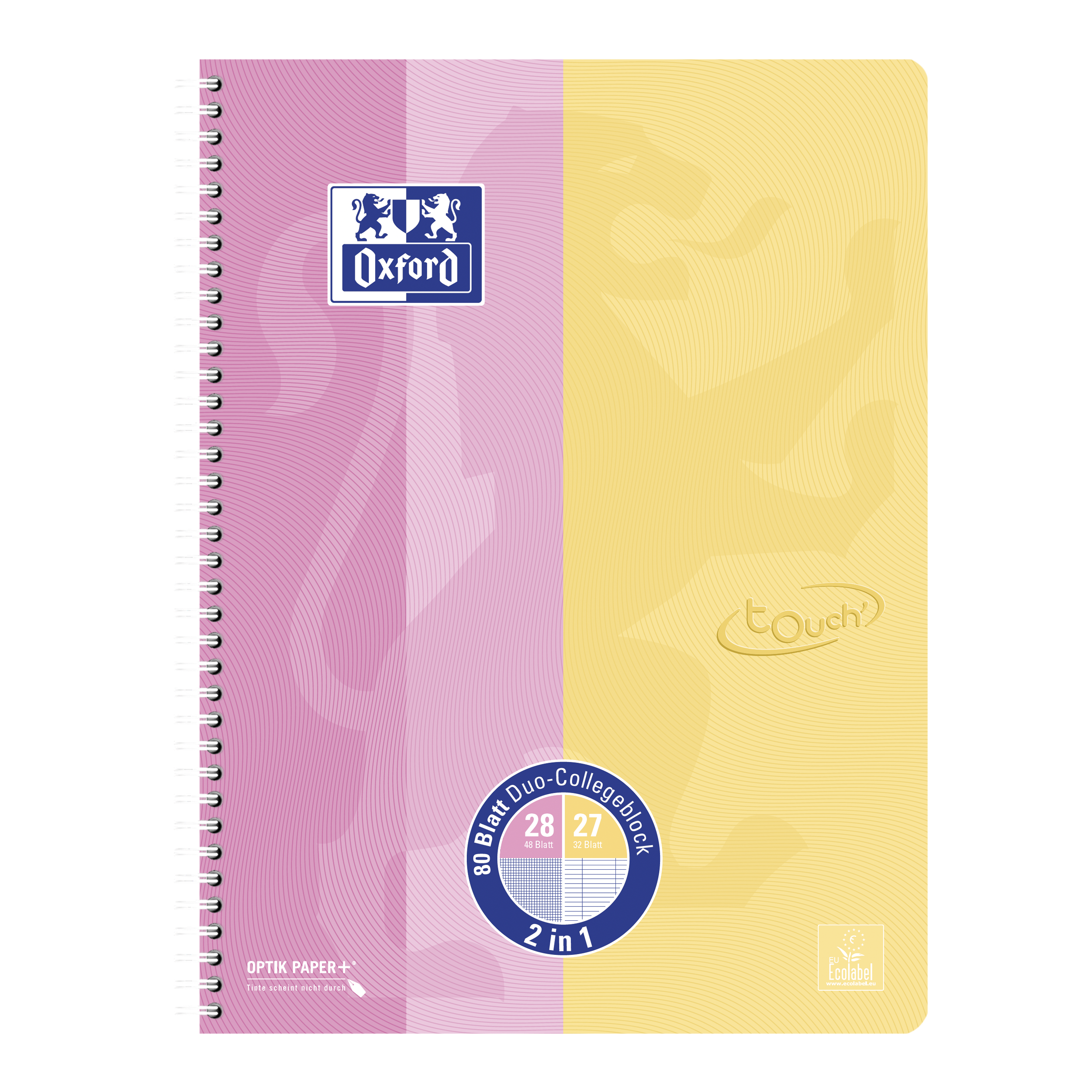 Die Oxford Collegeblöcke überzeugen zudem durch ihre hochwertige Produktqualität. Das extraweiße, seidenglatte Optik Paper+® sorgt für ein angenehmes Schreibgefühl ohne Durchscheinen von Tinte, während das Soft-Touch-Cover mit seiner samtigen Oberfläche und die stabile Doppelspiralbindung für eine robuste, griffige Handhabung sorgen. Zusätzlich erfüllen die Blöcke die Anforderungen der EU-Ecolabel-Zertifizierung, sodass sie auch in puncto Nachhaltigkeit zu überzeugen wissen.