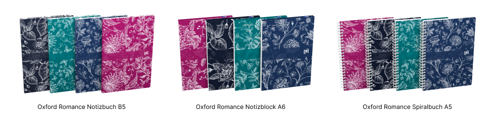 Hannover, 10.11.2025 – Pünktlich zum Weihnachtsgeschäft präsentiert OXFORD die neue Romance Serie, welche klassisches Design und moderne Raffinesse vereint. Feine florale Muster im Stil des französischen “Toile de Jouy”, kombiniert mit samtweicher Soft-Touch-Oberfläche und erstklassigem Optik Paper+® machen jedes Exemplar zu einem zuverlässigen Begleiter für Notizen, Meetings oder Journals. Ab November 2025 ist die Serie im Handel erhältlich.