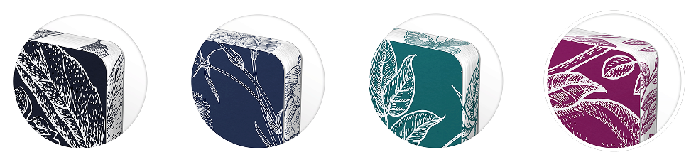 Die Romance Produkte sind in vier harmonischen Farben erhältlich: Schwarz, Navyblau, Tannengrün und Bordeauxrot. Jede Ausführung ist mit einem feinen, weißen floralen Motiv im Stil des französischen “Toile-de-Jouy-Designs“ (franz. Stoffdruck) verziert, das ursprünglich im 18. Jahrhundert in der Region Jouy-en-Josas entstand. Damals erzählten kunstvoll gezeichnete Szenen aus dem ländlichen Leben ihre Geschichten auf zarten Stoffen, die in den feinen Linien eine ganze Welt zum Leben erweckten. Dieses Muster lädt dazu ein, die eigene Kreativität zu entfalten, als würde man durch die Seiten eines kleinen, historischen Kunstwerks blättern.