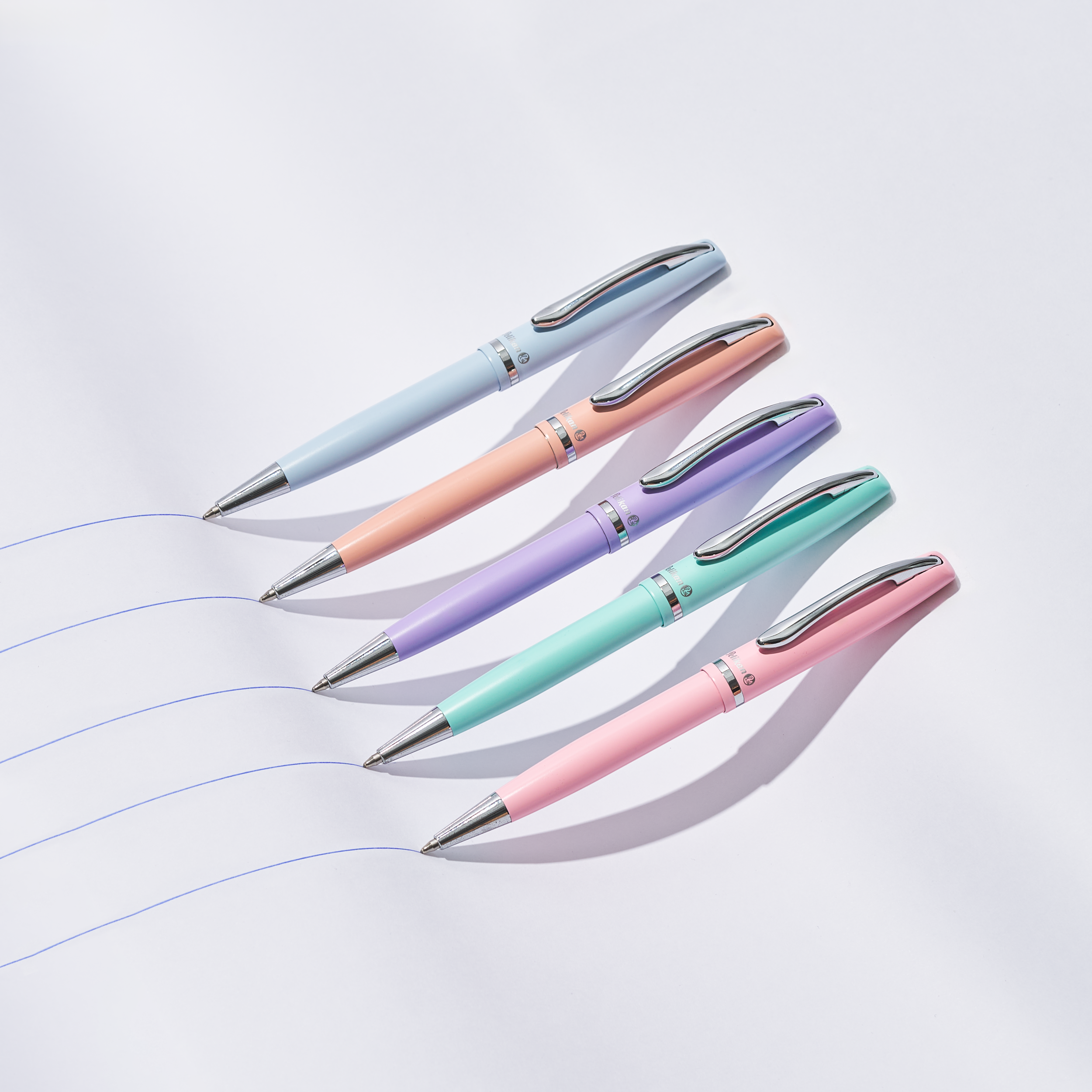 Abgerundet wird das Jazz-Sortiment durch die Pastell-Reihe in den Farben Lavendel, Apricot, Rosé, Blau und Mint. Das seidenmatt lackierte Ober- und Unterteil verleiht dem Modell eine sanfte, elegante Optik. Clip, Ring und Spitze sind verchromt und sorgen für ein harmonisches Gesamtbild. Die Pastell-Serie ist ebenfalls ausschließlich als Kugelschreiber verfügbar.