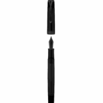 Die matte Oberfläche macht den Füllhalter zu einem unvergleichlichen haptischen Erlebnis: robust und gleichzeitig angenehm weich in der Hand. Vom Griffstück über den Schaft bis zu den Zier- und Mittelringen – selbst die elegant ausgearbeitete 18-Karat-Goldfeder ist vollständig in mattem Schwarz gehalten. Der nahtlose, monochrome Look wird durch einen subtilen Kontrast aus Oberflächenstrukturen veredelt: satiniertes Metall trifft auf hochglänzendes Edelharz und formt eine moderne, elegante Silhouette. Das dezent getönte Tintenfenster integriert sich nahezu unsichtbar in das durchgängige Design.