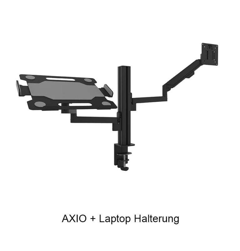 Darüber hinaus bietet AXIO eine Vielzahl an zusätzlichen Accessoires, darunter eine Laptop-Halterung, VESA-Halterungen mit integrierter Gleitschiene sowie Gasfederarme, die individuell kombiniert werden können. So lassen sich Arbeitsplätze maßgeschneidert konfigurieren, genau auf den persönlichen Bedarf abgestimmt.