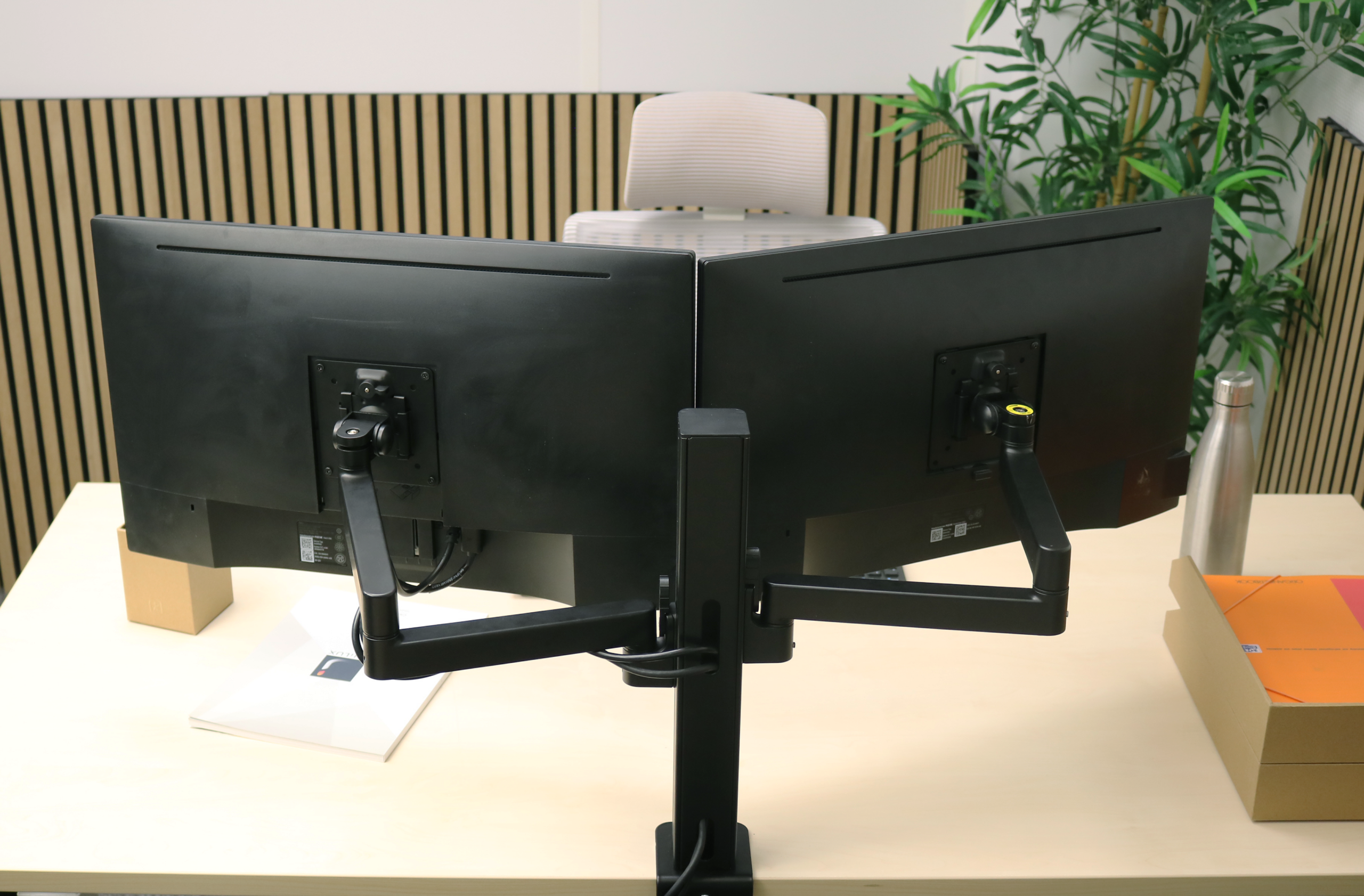 AXIO ist als Ein- und Doppel-Monitorarm verfügbar und passt sich flexibel an unterschiedliche Arbeitsplatzanforderungen an. Dank des sanften Gleitschlittens lässt sich die Höhe stufenlos zwischen 165 und 506 mm verstellen, während Neigung, Schwenkung und Drehung der Monitore ebenfalls individuell angepasst werden können. AXIO unterstützt Bildschirmgrößen von 13 bis 36 Zoll, ist mit den gängigen VESA-Standards kompatibel und trägt Monitore mit einem Gewicht von bis zu 10 kg. Die Befestigung erfolgt wahlweise über eine Klemme oder eine Durchführungsöffnung (Grommet). Ein weiteres praktisches Feature ist das integrierte Kabelmanagement, das eine geordnete, verdeckte Kabelführung ermöglicht und für mehr Platz sowie ein aufgeräumtes Erscheinungsbild am Arbeitsplatz sorgt. Ein besonderes Highlight ist die Möglichkeit, die UNILUX-Leuchten STRATA, STRATA LUMINO und ELITE LUMINO direkt am Monitorarm zu integrieren. Leuchte und Monitorarm bilden ein perfekt abgestimmtes Duo, das Haltung, Sichtkomfort und Wohlbefinden gleichermaßen unterstützt. Diese Qualität und Innovationskraft zeigt sich unter anderem darin, dass sich sowohl der AXIO-Monitorarm als auch die ELITE LUMINO unter den Top 100 Bürolösungen 2026 der Office Roxx, einem Fachmagazin für moderne Arbeit, das seit über 20 Jahren die Top-Bürolösungen des Jahres kürt, behaupten konnten (AXIO Platz 36 & ELITE LUMINO Platz 52).