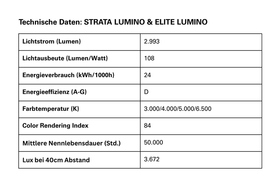 Beide Modelle unterscheiden sich bewusst im Design und bieten flexible Einsatzmöglichkeiten. STRATA LUMINO verfügt über einen 70 cm langen, flexiblen Schwanenhals, durch den sich Höhe und Ausrichtung der Leuchte mit nur einem Handgriff schnell anpassen lassen. ELITE LUMINO überzeugt durch ein besonders elegantes Erscheinungsbild mit Gleitmechanik und einem schwenkbaren Arm (+/– 90°), der eine präzise Lichtausrichtung ermöglicht. Die zwei Schreibtischlampen sind jeweils mit einem 80 cm breiten Leuchtenkopf ausgestattet und sorgen für eine gleichmäßige, asymmetrische Ausleuchtung des gesamten Schreibtisches bis zum Rand. Blendungen werden reduziert, relevante Arbeitsbereiche gezielt ausgeleuchtet und die Augen spürbar entlastet. Über einen integrierten Farbtemperaturregler kann das Licht in vier Stufen an unterschiedliche Tätigkeiten angepasst werden, etwa für konzentriertes Arbeiten, Lesen oder kurze Pausen. Dank der platzsparenden Tischklemme lassen sich beide Lampen unauffällig hinter dem Monitor befestigen und eignen sich auch für Multi-Monitor-Arbeitsplätze. Ein weiteres Plus: Der Lampenkopf und Arm bestehen jeweils aus recyceltem Aluminium und unterstreichen den nachhaltigen Anspruch der Leuchten.